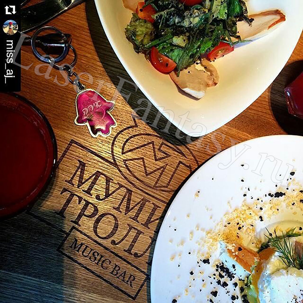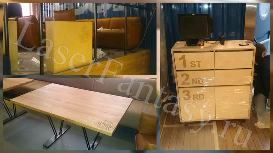 Оформление кафе. Дизайн интерьера фото. Красивая гравировка. -