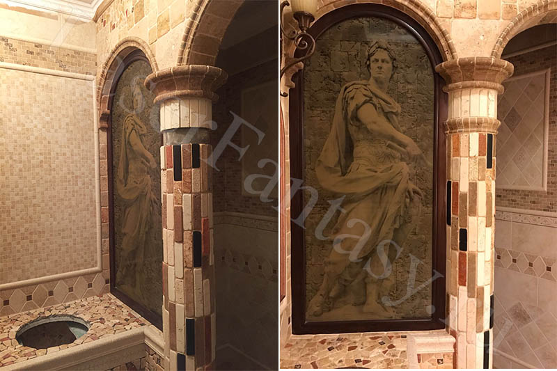 Идеи интерьерного решения: фото скульптуры Gaius Julius Caesar на бронзовом стекле в нише ванной комнаты: 600х1380х8мм. -