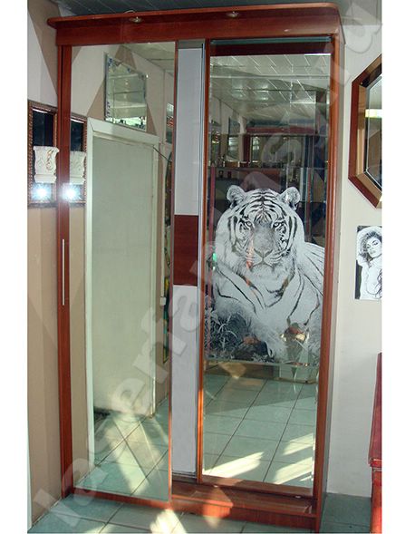 Тигр на двери. Шкаф в прихожую. Шкаф-купе. Дверь для шкафа. Встроенные шкафы. Шкаф с зеркалом -