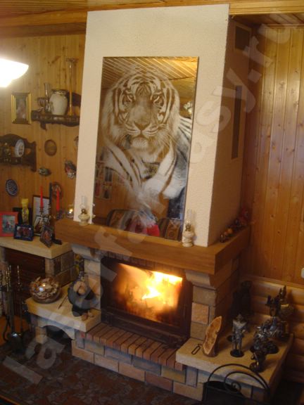 Камины фото. Каминный зал. Зеркало XXI века с внутренней лазерной гравировкой. Тигр. Гравировка в интерьере -