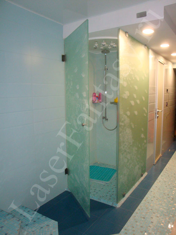 Душевые кабины. Предметы и элементы ванной комнаты с лазерной гравировкой. Стекло закаленное, сатинато -