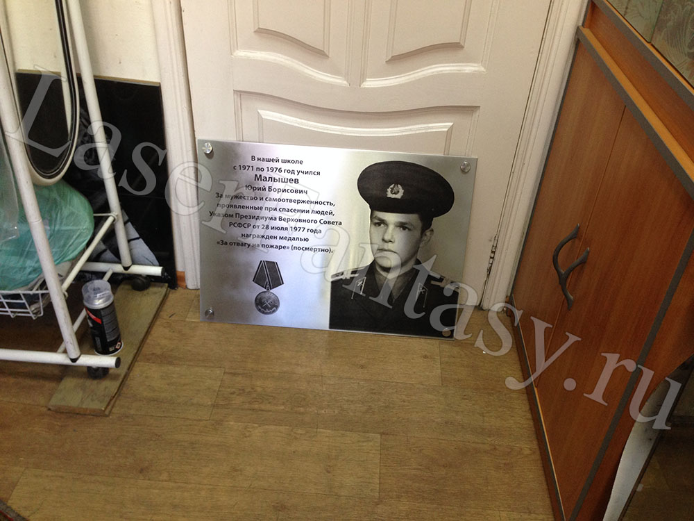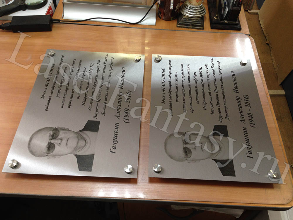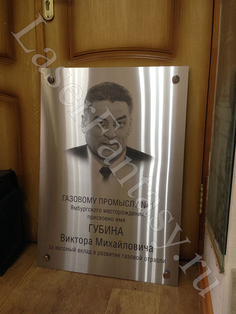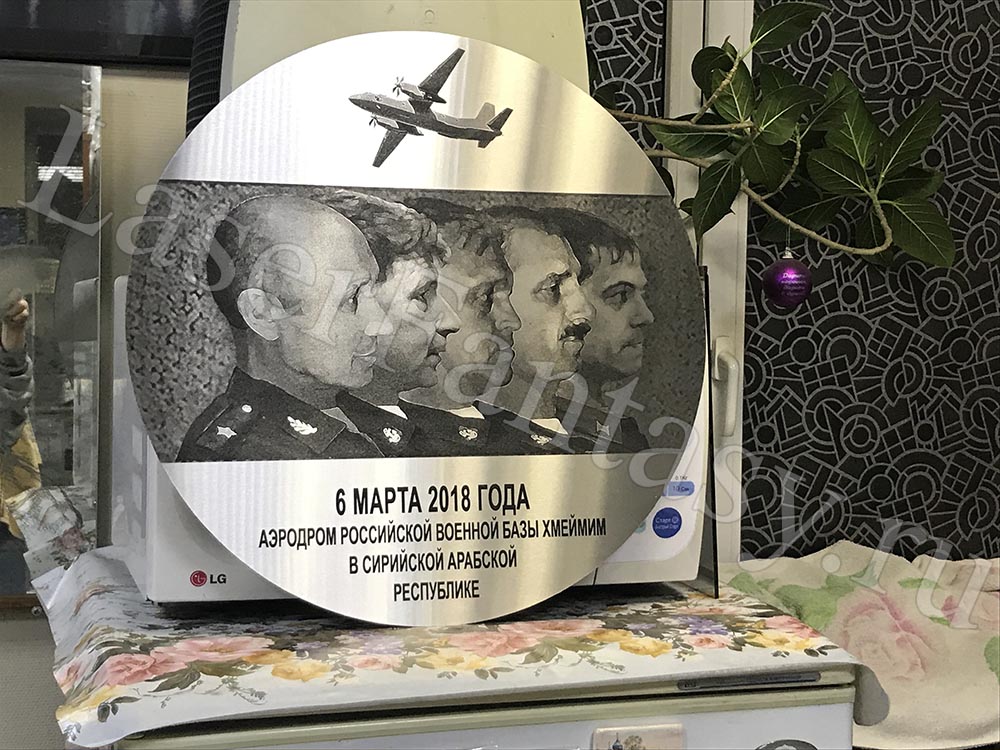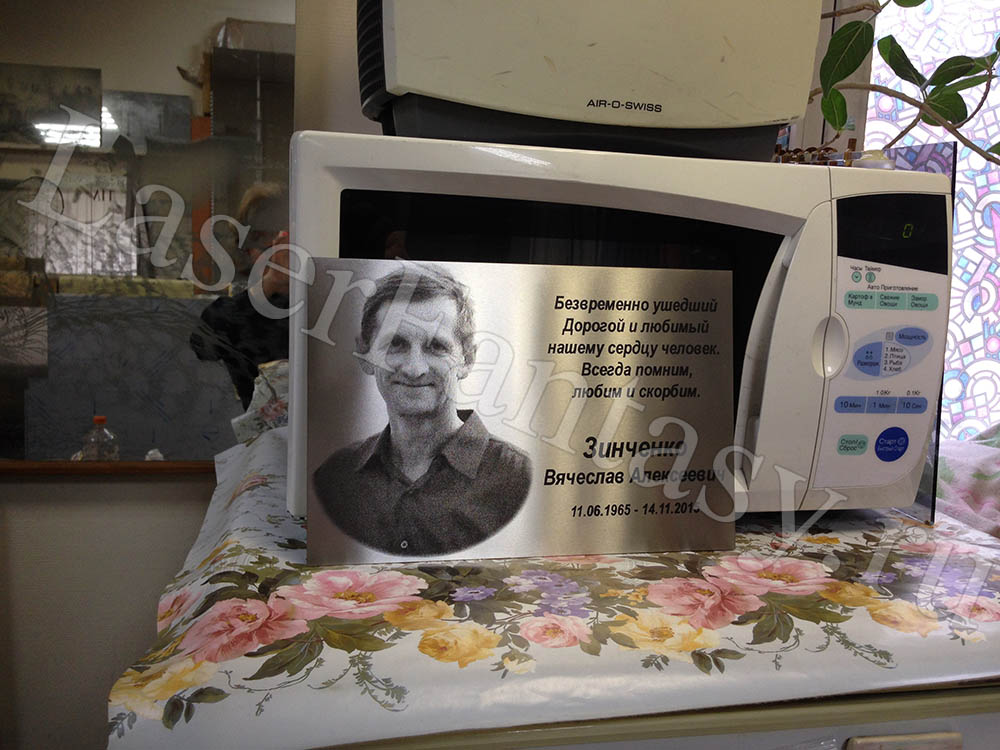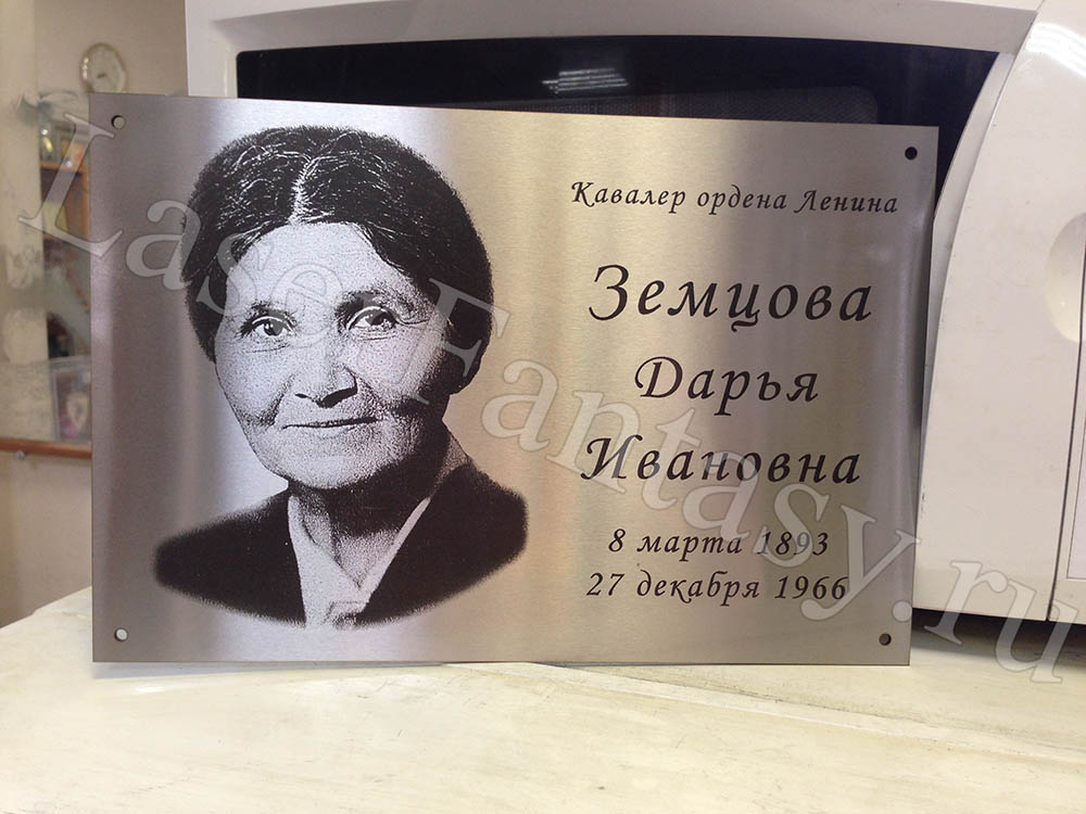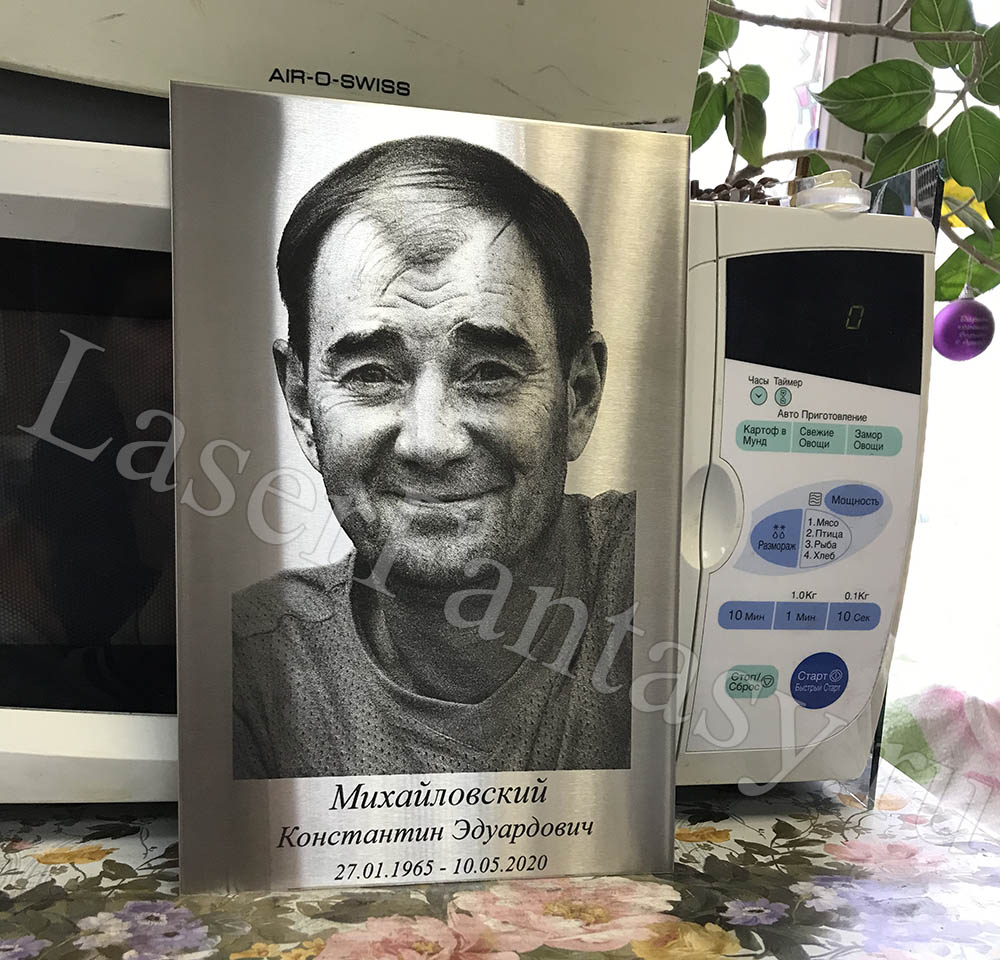 Гравировка портрета и текста на нержавейке 300х200х2мм -