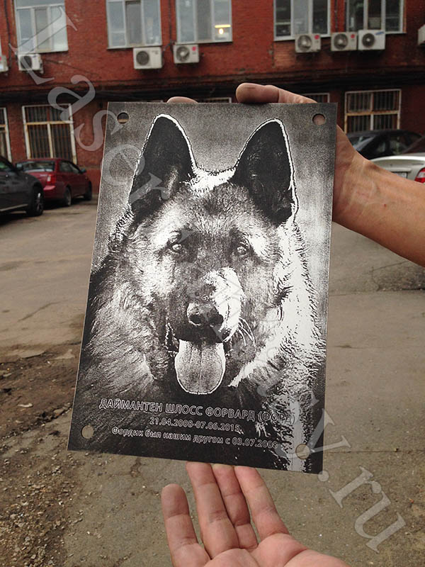 Фото любимой собаки в детализации гравировки на металле 200х300х2мм -