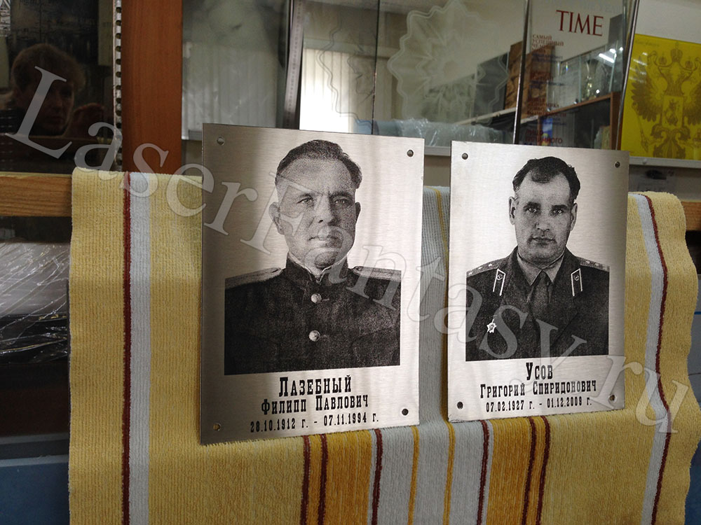 Шлифованный металл 3мм с гравировкой портрета 200х300мм. -