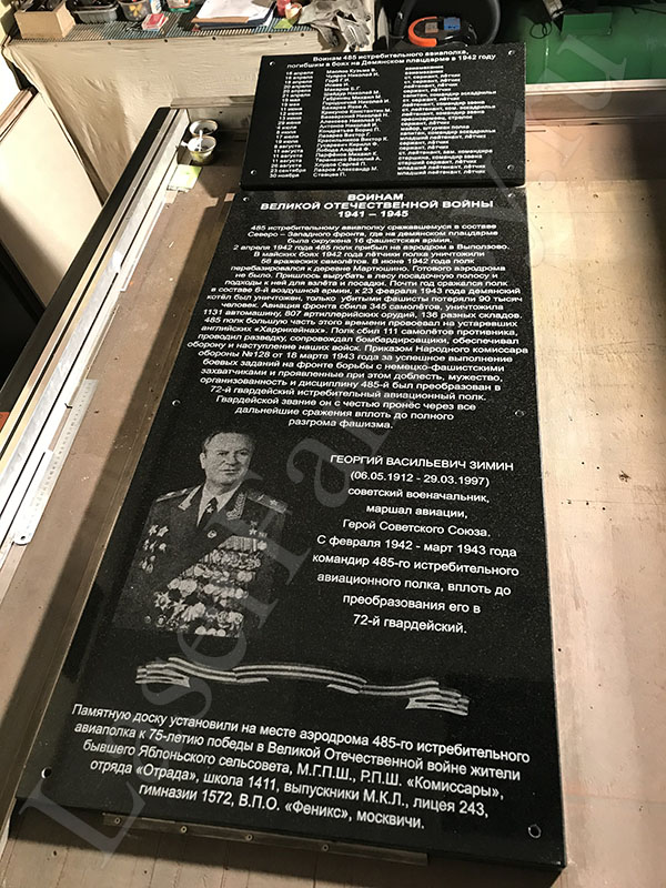 На граните фотогравировка портрета Зимина Г.В. - военачальника, маршала, героя. И список погибших воинов. -