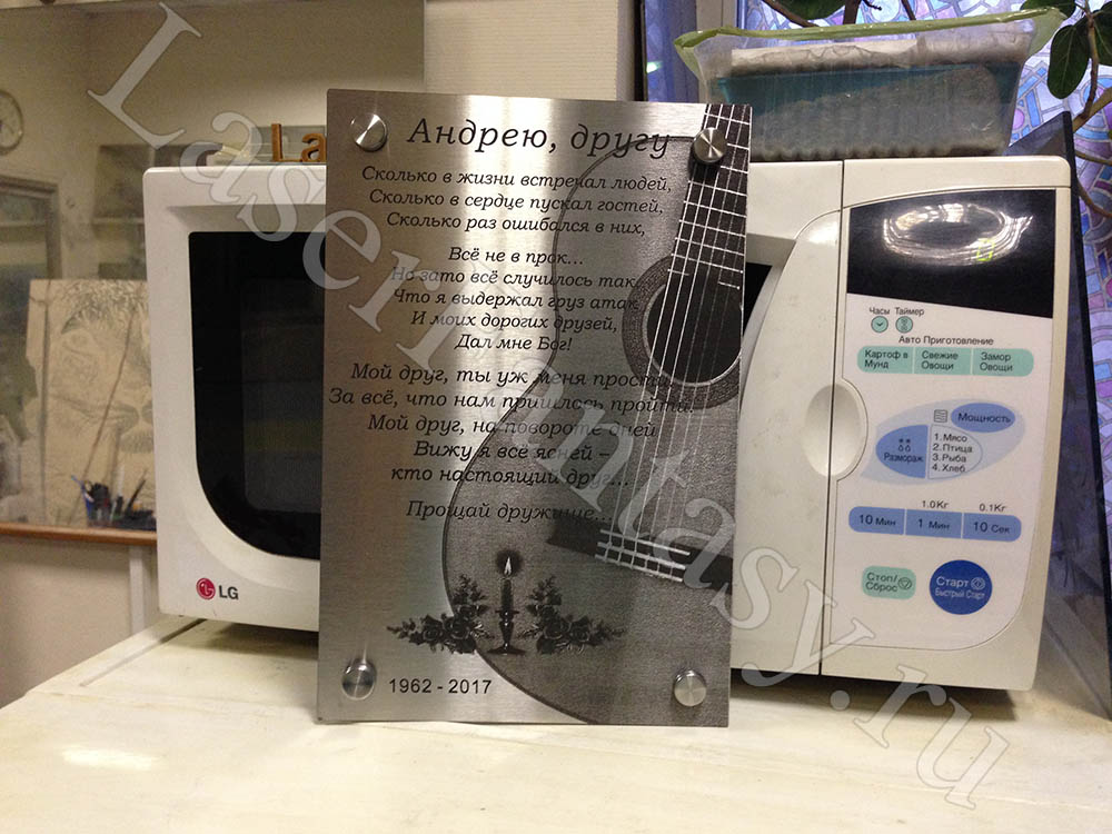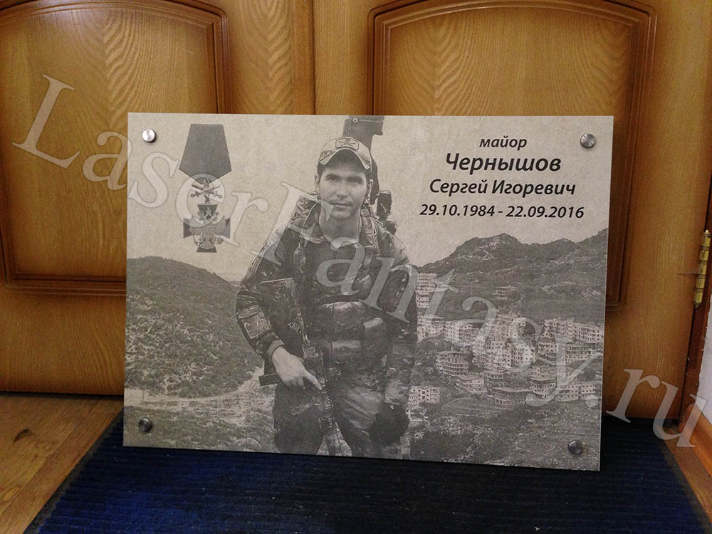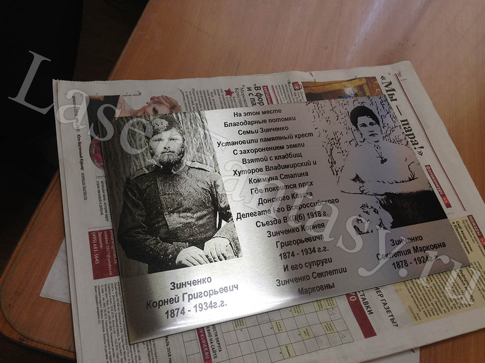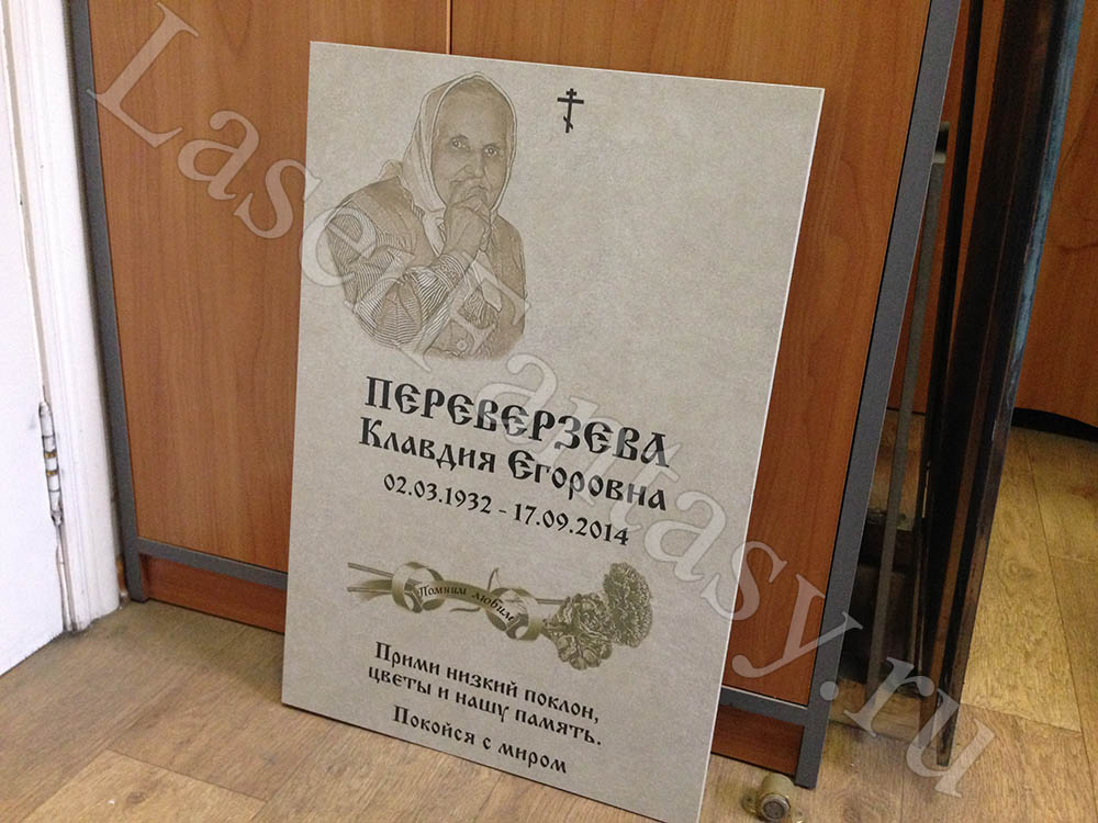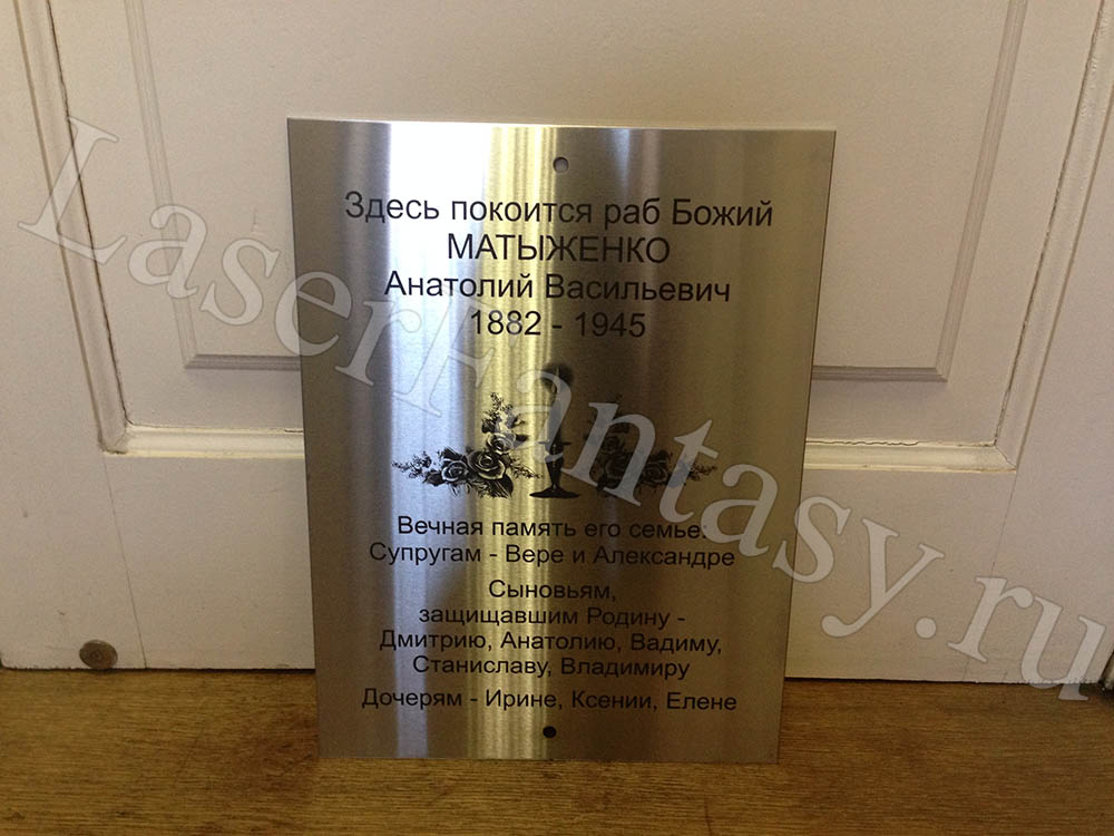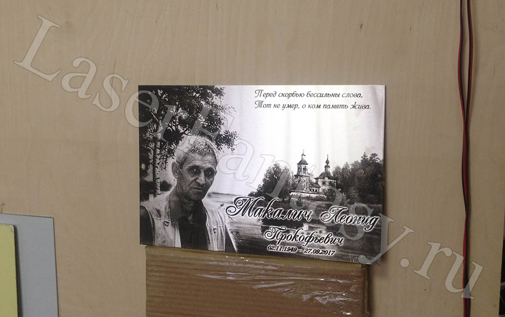 Заказать ритуальную табличку с лазерной гравировкой на металле: 300х200х2мм. Создание макета, коллажа. -