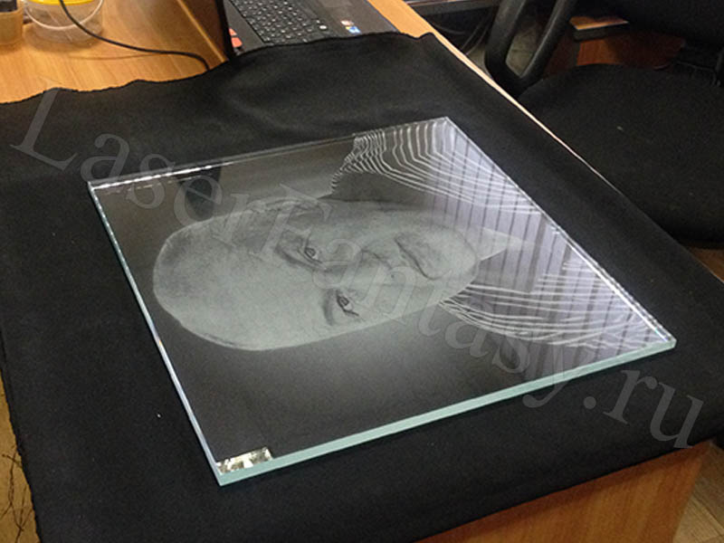 Лазерная гравировка фотографического качества на стекле 450х450х12мм. -