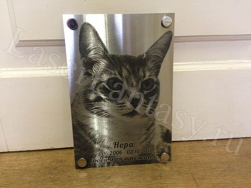 Заказать фото кошечки на металле 200х300х2мм способом лазерной гравировки. -