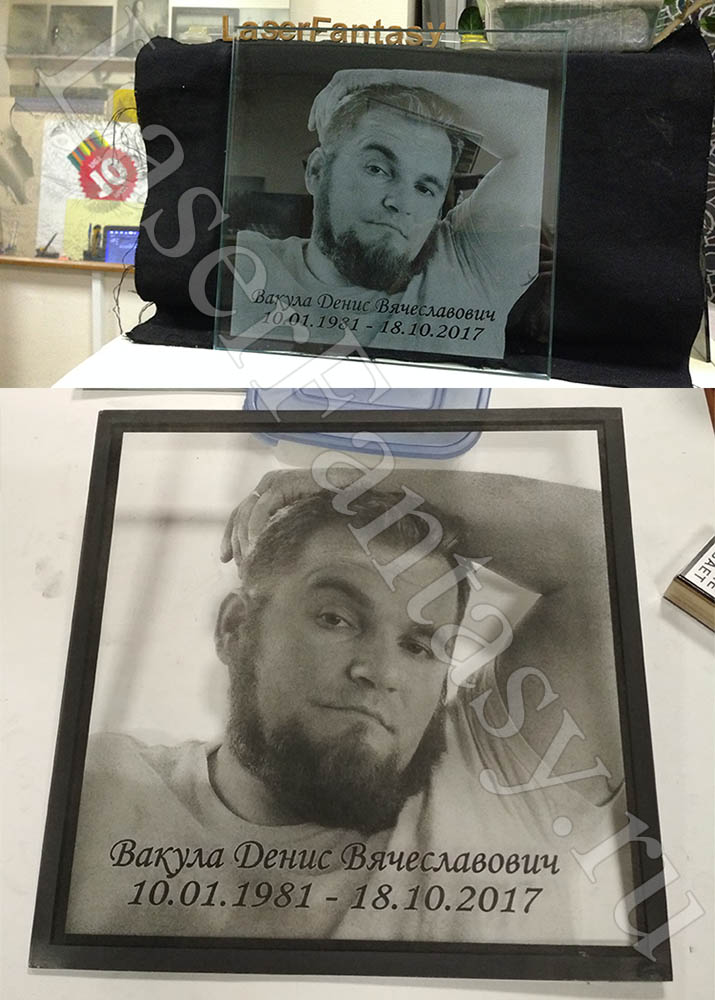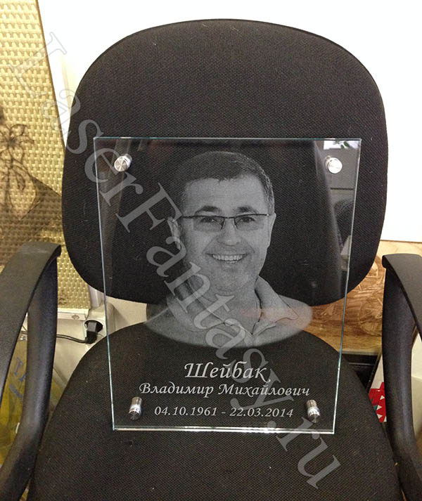 Памятная таблички из стекла для колумбария: 300х300х10мм с гравировкой портрета разным методом. -