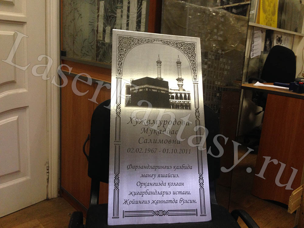 Срочное изготовление памятной таблички из металла 330х650х5мм с гравировкой на узбекском языке. -