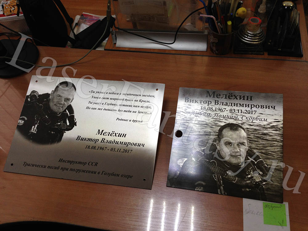 Гравировка на металле памяти водолаза: для колумбария 280х285х2мм, на дно Голубого озера 420х300х2мм. -