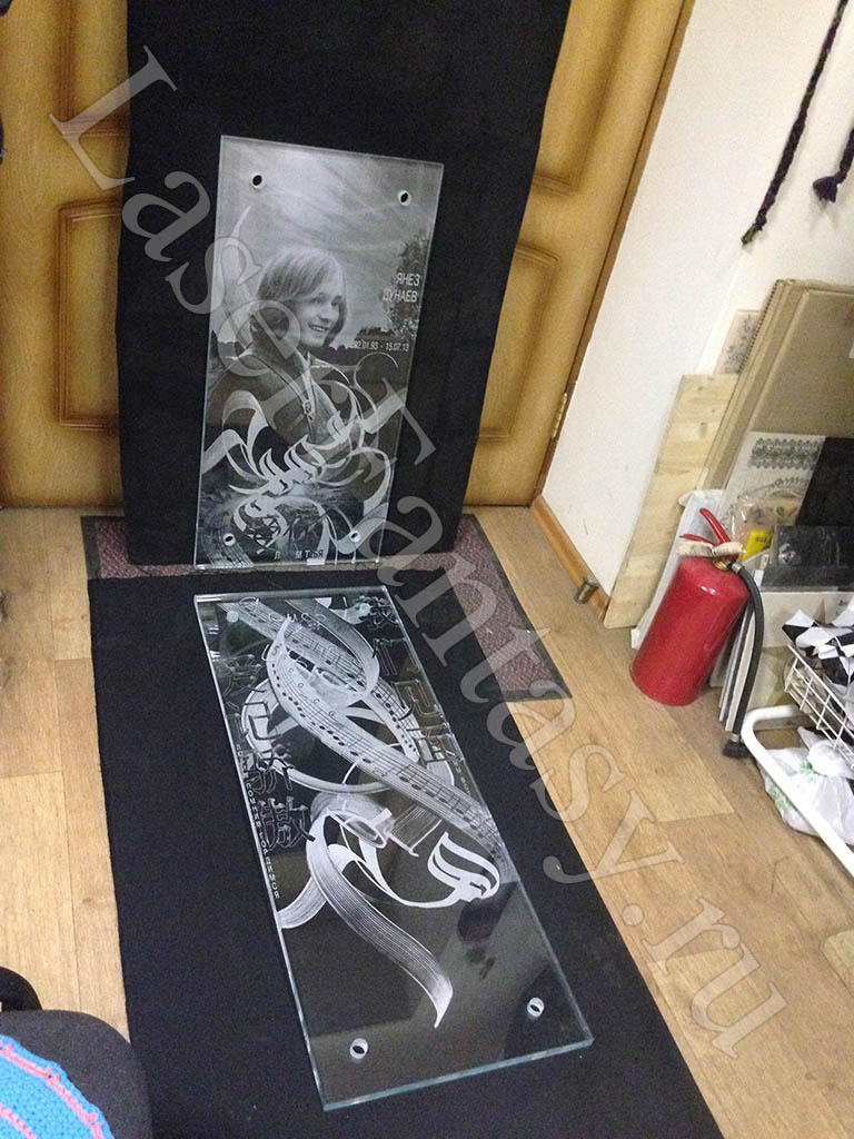 Памятник из стекла. 400х1000х20 мм. Стекло прозрачное с гравировкой. -