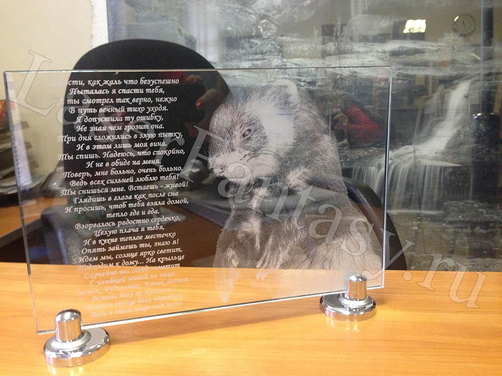 Памятные стихи на стеклянной плакетке 300х200х8мм. -